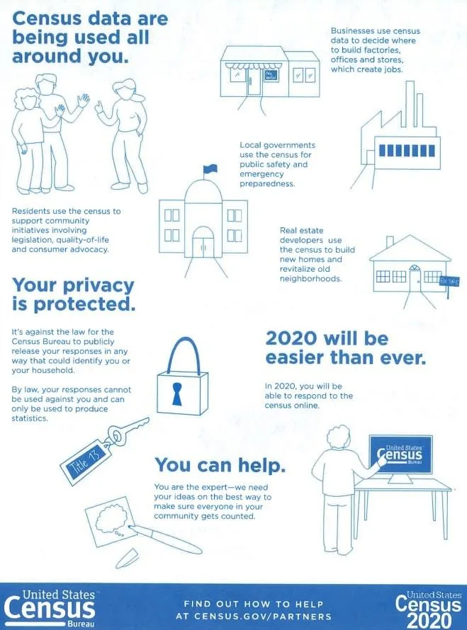For further information regarding the 2020 Census and how to get involved visit: https://2020census.gov/en.html.
