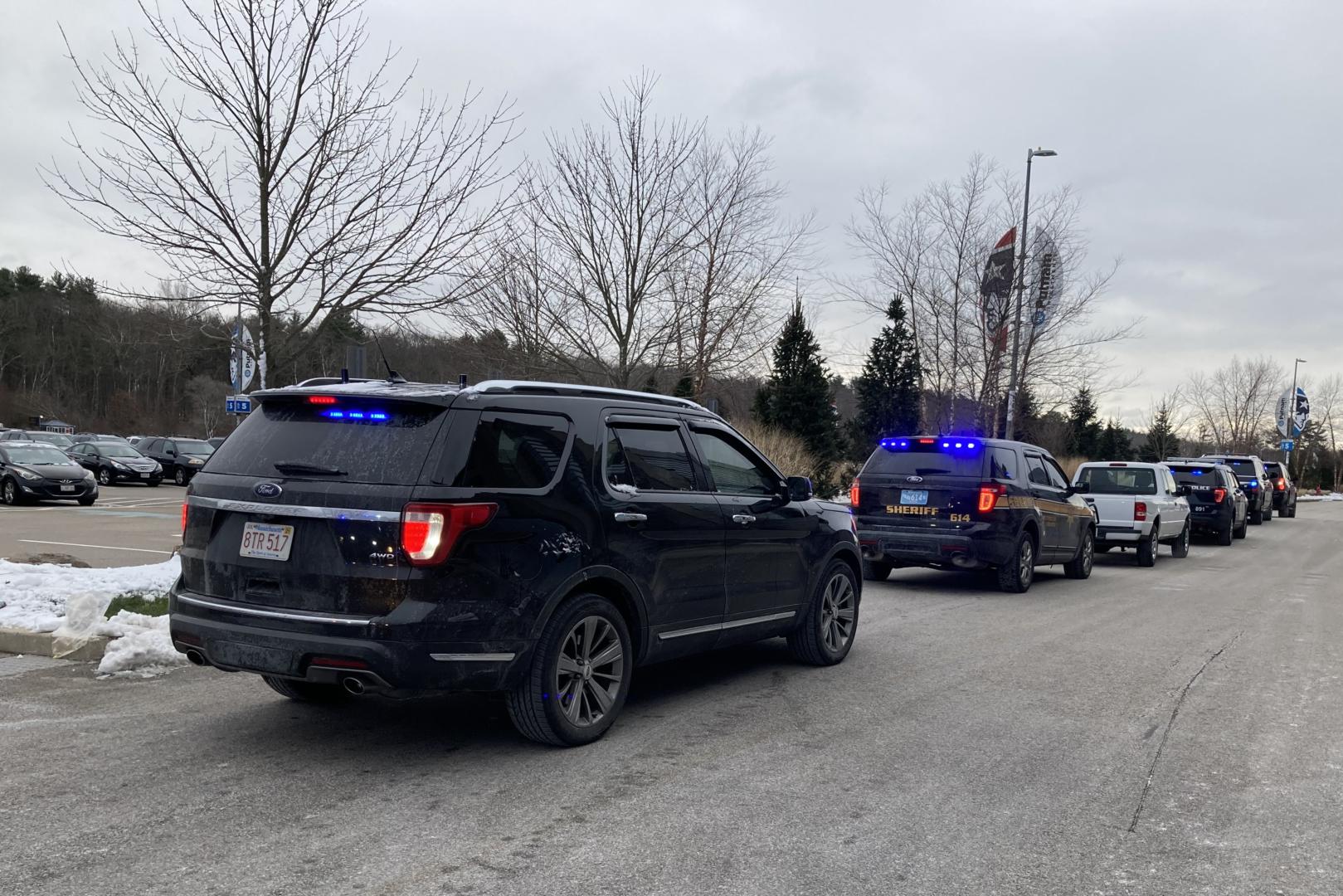 On Tuesday, Dec. 8, local police officers from the state’s 351 cities and towns convoyed in police cruisers and other law enforcement vehicles to Gillette Stadium to retrieve “Coats4Vets Buckets”. Each bucket contains a coat, masks, hand sanitizer and snacks that will be distributed to veterans in local departments’ cities and towns.