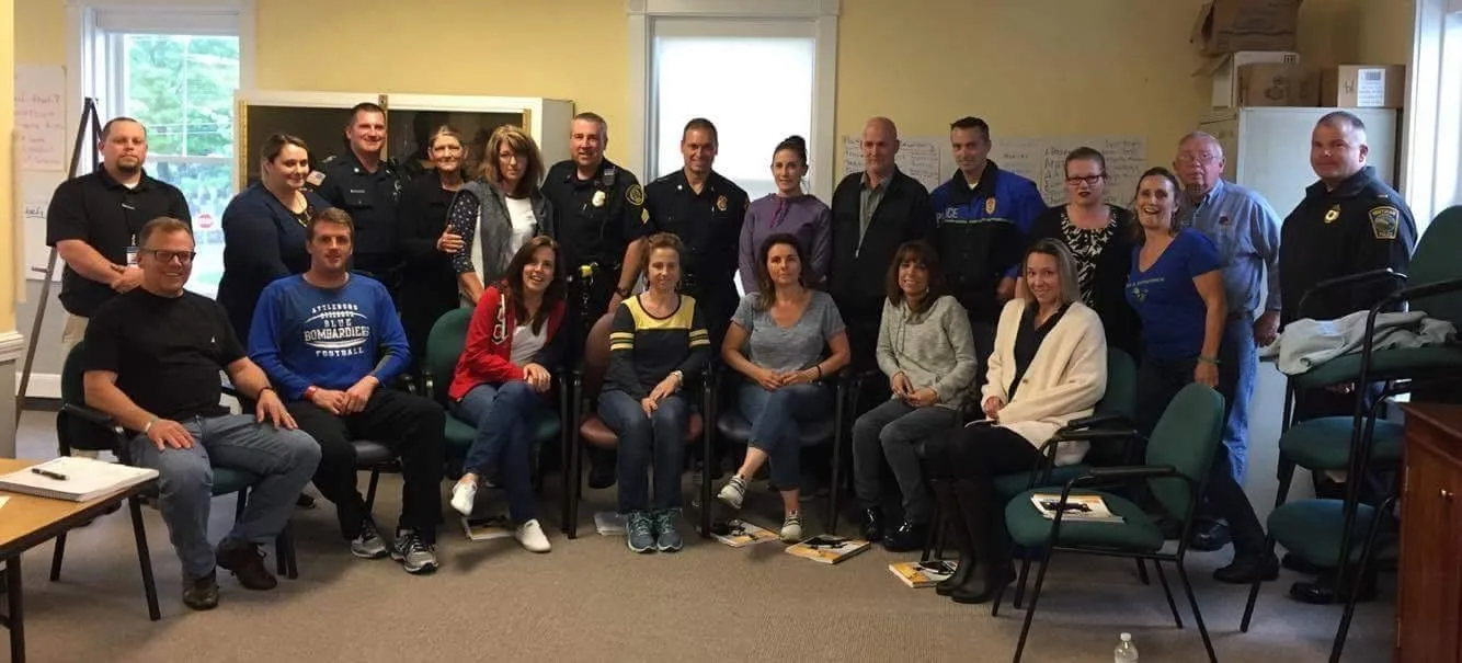 EB Recovery Coach Training June 6 2017 Local Police Officers and recent Recovery Coach Academy Graduates at celebration for completed training at EB Town Hall
